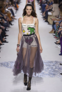 Christian Dior загварын ордны хавар-зуны шинэ цуглуулгад зориулсан загварын шоуг модель Саша Пивоварава "Why have there been no great woman artists?" гэсэн бичиг бүхий хар цагаан судалтай "mariniere" топ өмсөн нээсэн юм. Нэгэн цагт энэ асуултыг алдарт загварын түүхч Линда Нохлин тавьж байсан билээ. Christian Dior загварын ордон хавар-зуны шинэ цуглуулгаа урлахдаа зураач Ники де Сен-Фаллиас урам зориг авчээ. Тус загварын ордны бүтээлч захирал Мария Грация Кьюрри энэ удаад феминизм болон урлагийн сэдвийг илүү дэлгэрүүлэхийг хүссэн нь илт байлаа. Мөн тайзан дээр берет малгай, Парис бүсгүйчүүдийн өмсөх дуртай трапеци хэлбэрийн жийнс зэрэг Франц стилийн загварууд цөөн үзэгдсэн нь анхаарал татаж байсан юм.