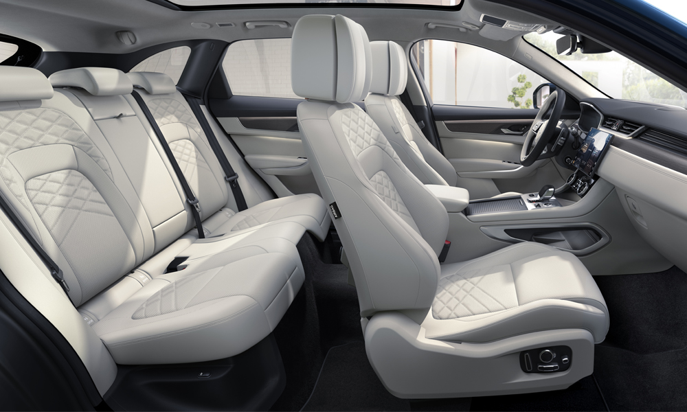 F-Pace автомашины дотоод засал нь илүү дээд зэрэглэлийн, тав тухтай болжээ. Тус автомашины бүхээгт дуу, дүрсний өндөр чанартай 11.4 инчийн (28.95 см) хүнхэр хэлбэртэй HD мэдрэгчтэй дэлгэцийг суурилуулсан байна. Мөн F-Pace нь жийп автомашин тул орон зай, багтаамжийн хувьд цэлгэр, том бөгөөд насанд хүрсэн таван хүн суух боломжтой. Нарийн аргаар урласан суудлын бүрээсний гадаргуу нь хөвөн зөөлөн мэдрэмжийг өгөх ба нийт арван төрлийн өнгөнөөс өөрийн хүсэл сонирхолд тааруулан сонгож болох билээ. F-Pace-ийн суудлыг 40:20:40 харьцаатай хийсэн нь суудал тус бүрийг эсвэл бүхэлд нь хурааж нэмэлтээр зорчигч тээвэрлэх, том оврын ачаа ачих боломжийг олгох зорилготой юм. Түүнчлэн автомашины хаалганд багтаамж ихтэй тасалгаа болон бүхээгийн голын хэсгийн доор жижиг эд зүйлсийг хийх тасалгаа гаргасан нь салоны бүх хэсгийг хэрэглээ талаас нь бодож бүтээснийг илтгэнэ. Тиймээс F-Pace автомашин нь өдөр тутамд төгс нийцэхийн сацуу гэр бүл, найз нөхөдтэйгөө өнгөрүүлэх аяллын найдвартай хамтрагч тань болж чадна.